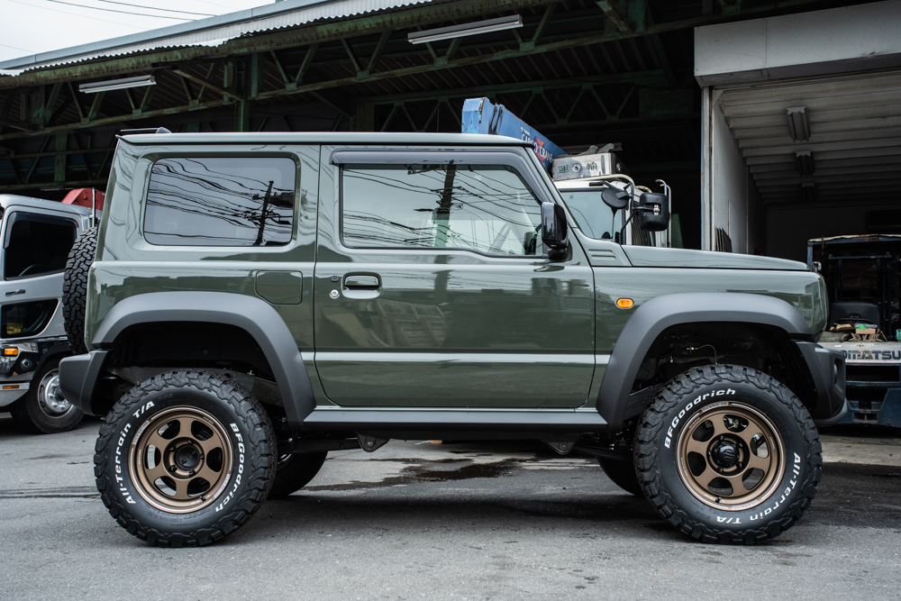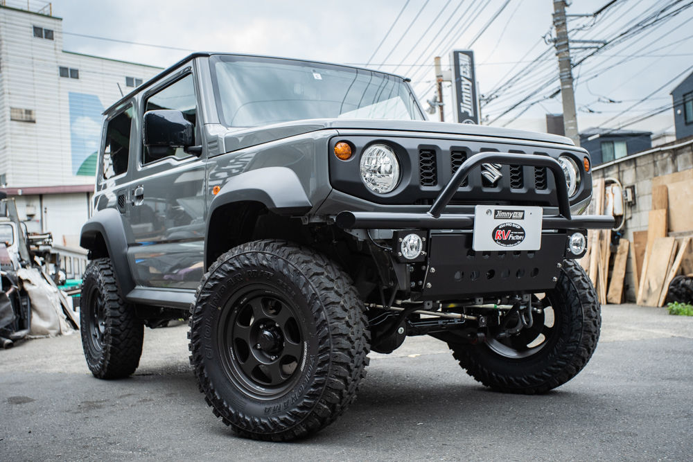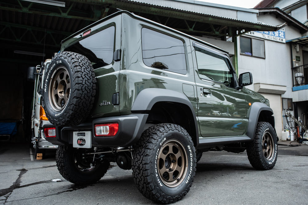 大人気新型ジムニー JB74W 足回り強化にてご入庫いただきました